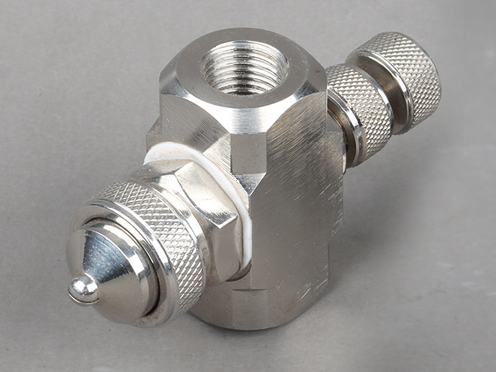 1、空氣霧化噴嘴特殊的內(nèi)部結(jié)構(gòu)設(shè)計(jì)能使液體和氣體均勻混合,產(chǎn)生微細(xì)液滴尺寸的噴霧或粗液滴噴霧。通過增加氣體壓力或降低液體壓力可得到更加微細(xì) (30微米左右)的液滴噴霧,從而達(dá)到較高的氣體流率與液體流率比