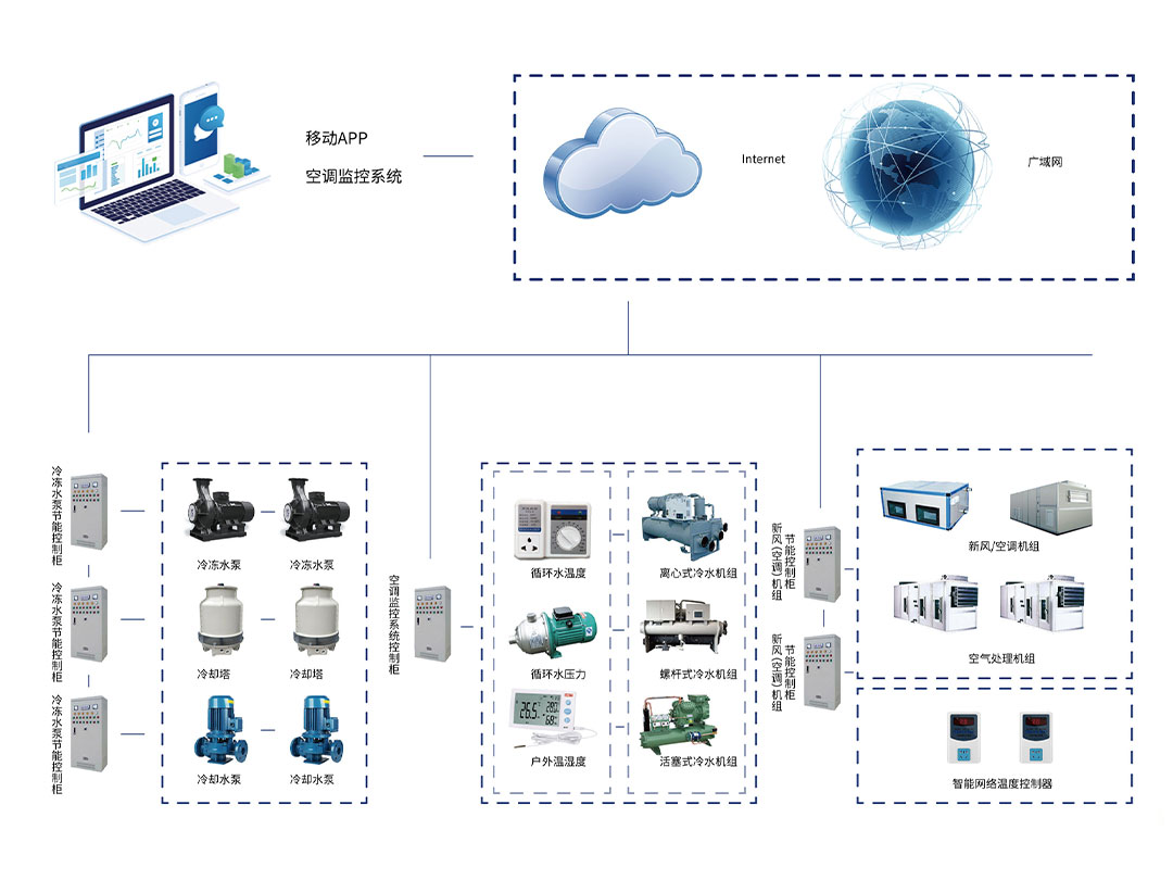 適用于各種類型、各種品牌的中央空調(diào),穩(wěn)定獲取空調(diào)主機(jī)的運(yùn)行參數(shù),動(dòng)態(tài)調(diào)整設(shè)備運(yùn)行。