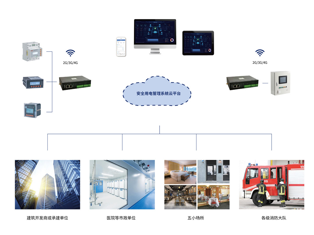 安全用電管理系統(tǒng)基于移動互聯(lián)網(wǎng)、云計算技術、通過物聯(lián)網(wǎng)傳感終端,將辦公建筑、學校、醫(yī)院、賓館、體育場館、生產(chǎn)企業(yè)等人員密集場所的電氣安全數(shù)據(jù),實時傳輸至安全用電管理云服務器,提供不間斷的數(shù)據(jù)跟蹤、統(tǒng)計分析和安全監(jiān)管,將各種安全隱患信息及告警信號,并推送給企業(yè)有關人員,以便及時檢查和消除隱患,真正做到防患于未然。